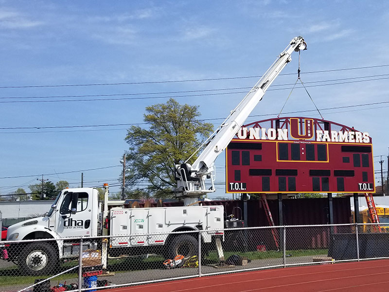 We are thrilled to showcase our recent installation of a Daktronics Football scoreboard at Union Highschool in NJ. This impressive scoreboard, manufactured by Daktronics, features a striking arch design that proudly displays the school's name and logo. With its advanced features and vibrant visuals, this scoreboard enhances the game experience for players, coaches, and spectators. We take pride in delivering top-quality installations that reflect the spirit and pride of the schools we serve.
