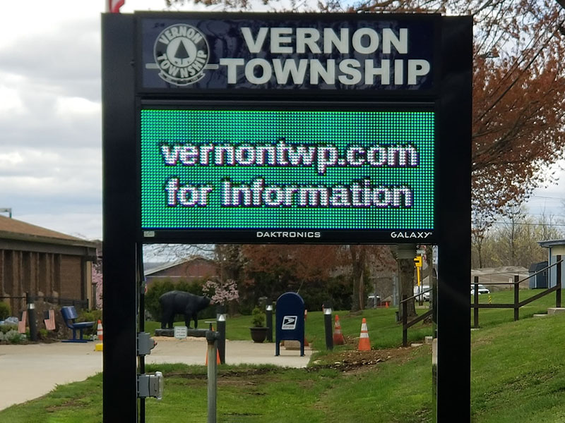 We completed a Message Center installation project for Vernon, NJ, which included a new steel structure and a Daktronics Message Center. This installation provides the township with an effective communication tool, displaying important messages and community updates. Our seamless installation process ensured the functionality and visual appeal of the Message Center, enhancing communication and engagement for Vernon residents.
